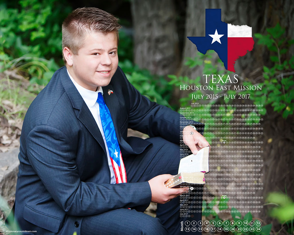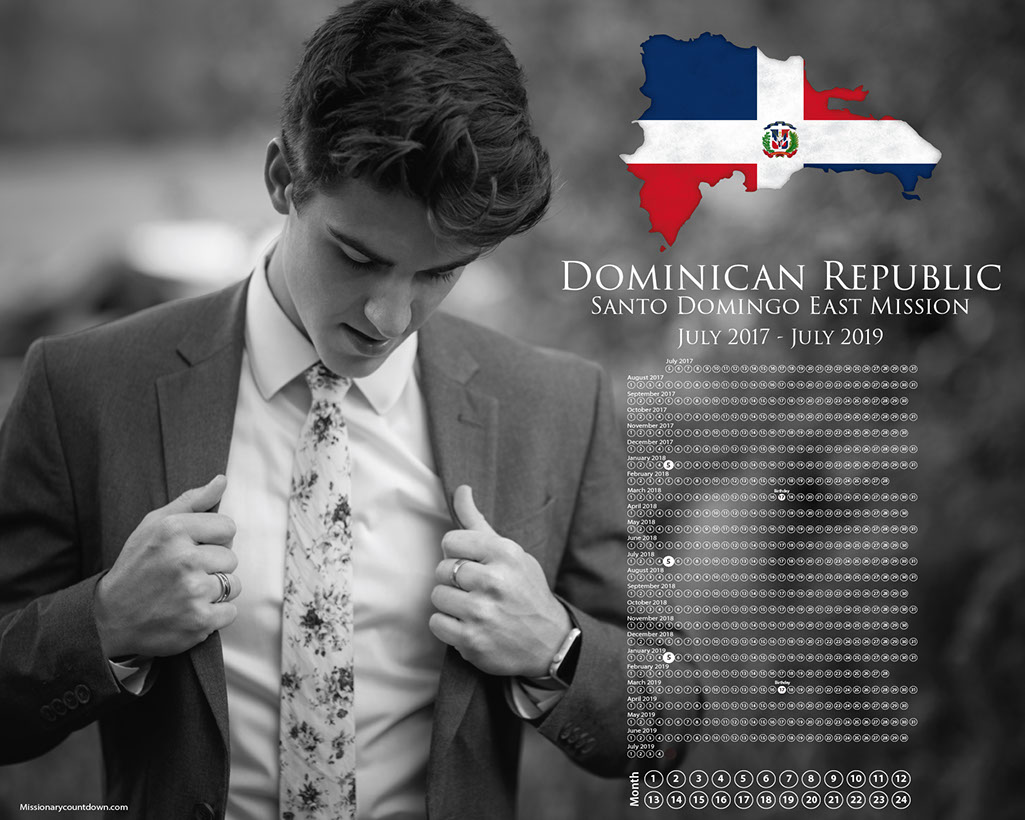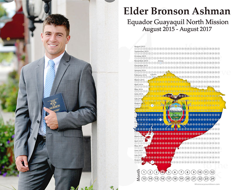 The classic calendar is our tried and true original. We cut your missionary out and place them on the flag of their mission country or state. Each calendar is customized to your missionary's actual mission dates, starting with the month and day when they enter the MTC and ending 18 or 24 months later. The bottom of the calendar includes a countdown for each month. All are sized to print to 8x10, 11x14, and 16x20. $34.99 is for the digital file for you to keep and send to a printer of your choice. You can print as many as you like and even mix and match sizes--like 8x10 for grandma & grandpa and a 16x20 for you.